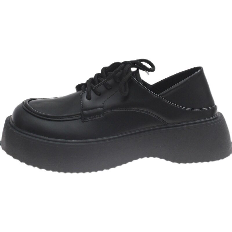 时尚厚底小皮鞋女乐福鞋2023夏季新款高跟英伦风百搭鞋子黑色单鞋