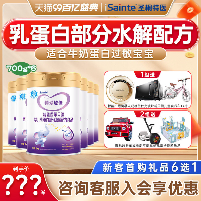 优博特爱敏佳适度水解奶粉过敏特殊医学用途婴儿配方奶粉700g*6罐