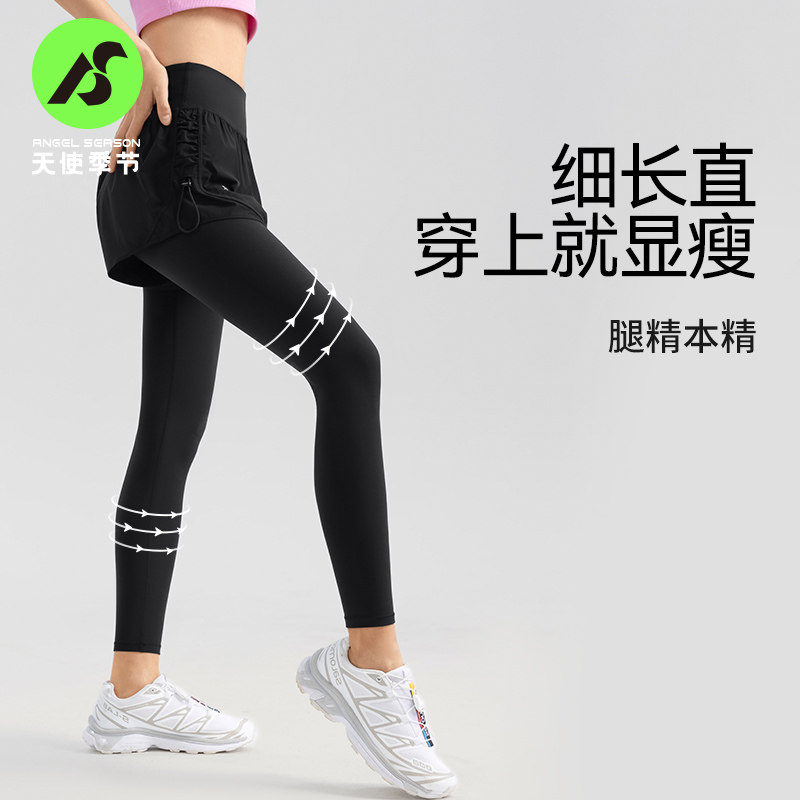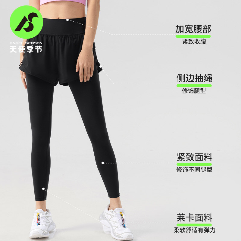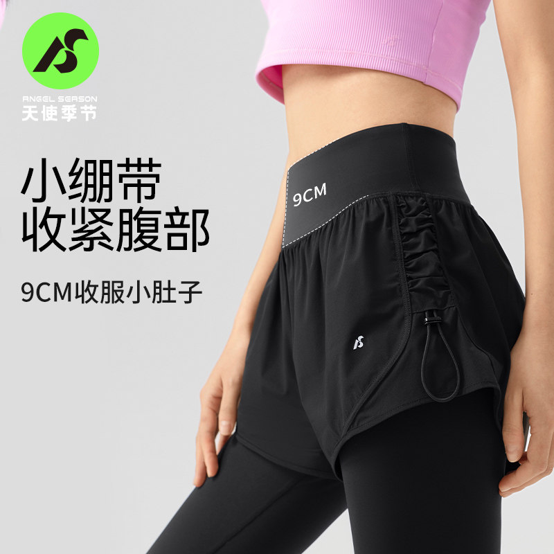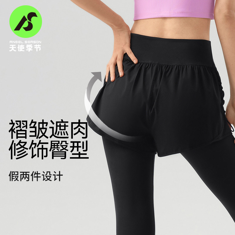 天使季节瑜伽裤女假两件瑜伽服运动春季跑步健身裤假两件运动裤女