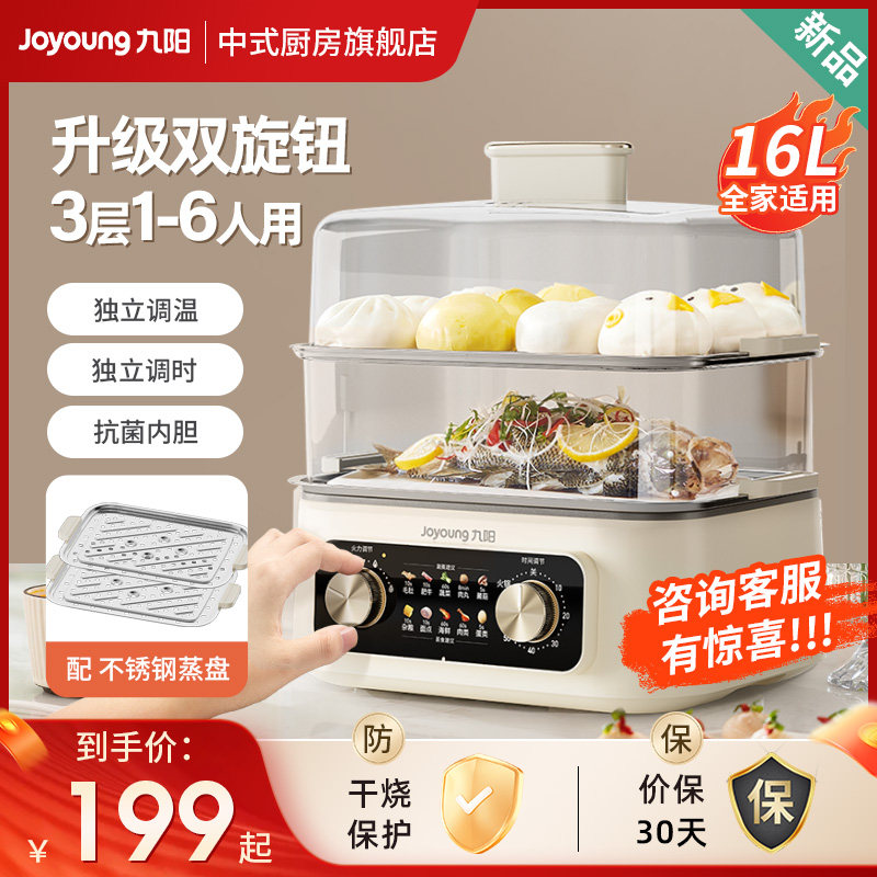 天猫九阳中式厨房旗舰店,九阳家用双旋钮三层电蒸锅16L,新品上市 咨询客服有惊喜!