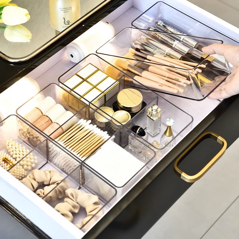 桌面收纳盒化妆品透明筐宿舍面膜抽屉整理箱储物盒零食杂物置物架