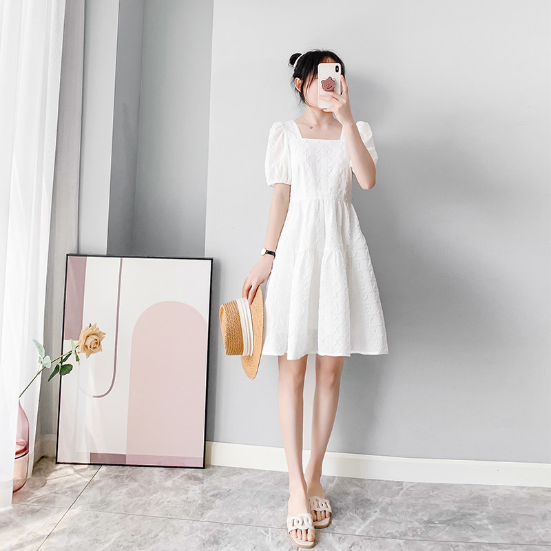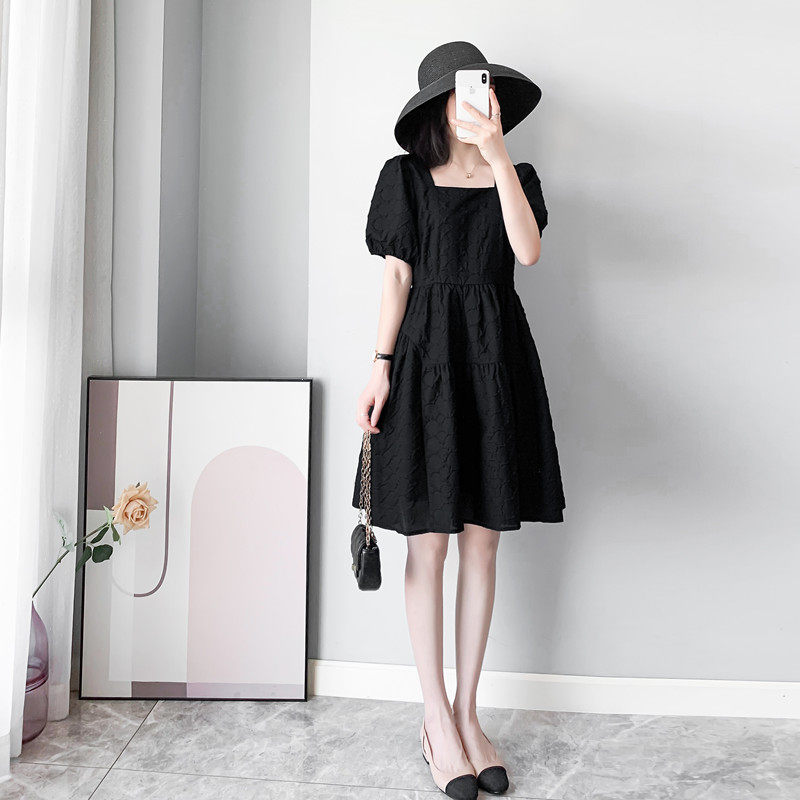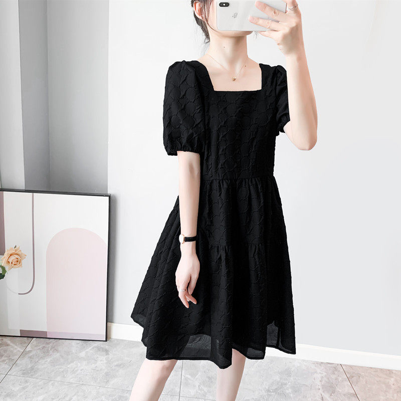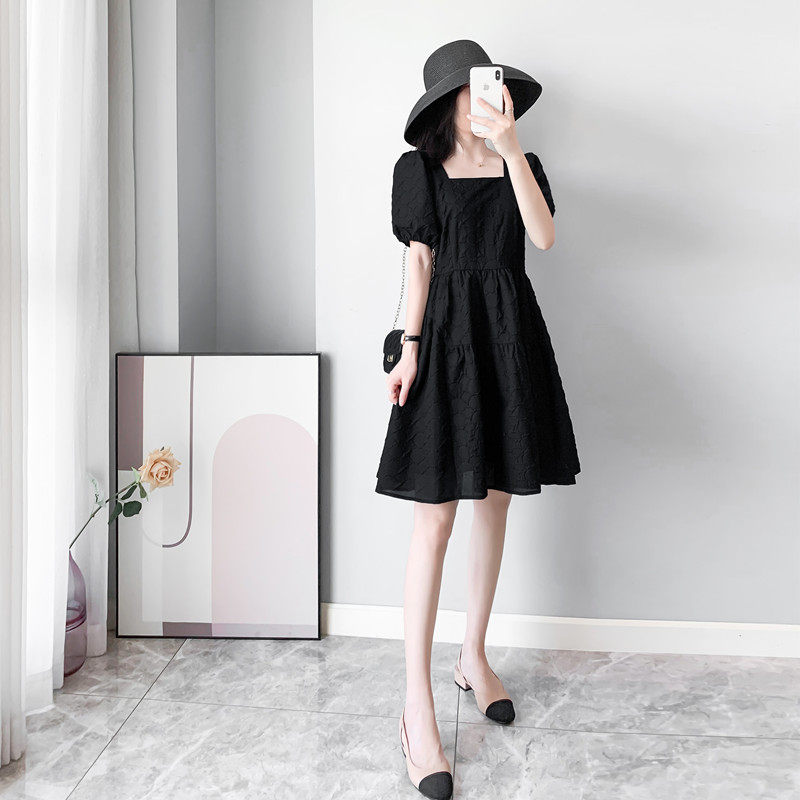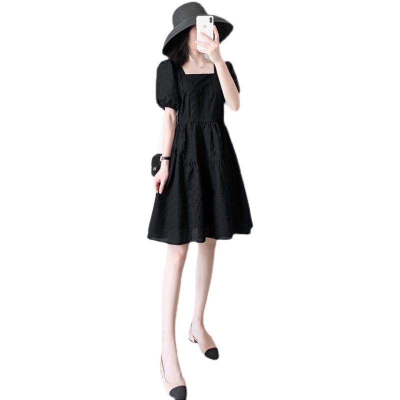 淘宝倩衣社,2023夏季新款通勤女装高级感a字裙子短袖收腰显瘦赫本法式连衣裙