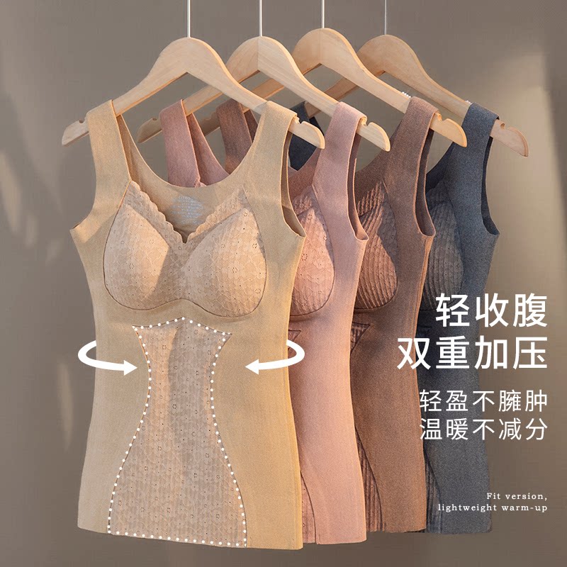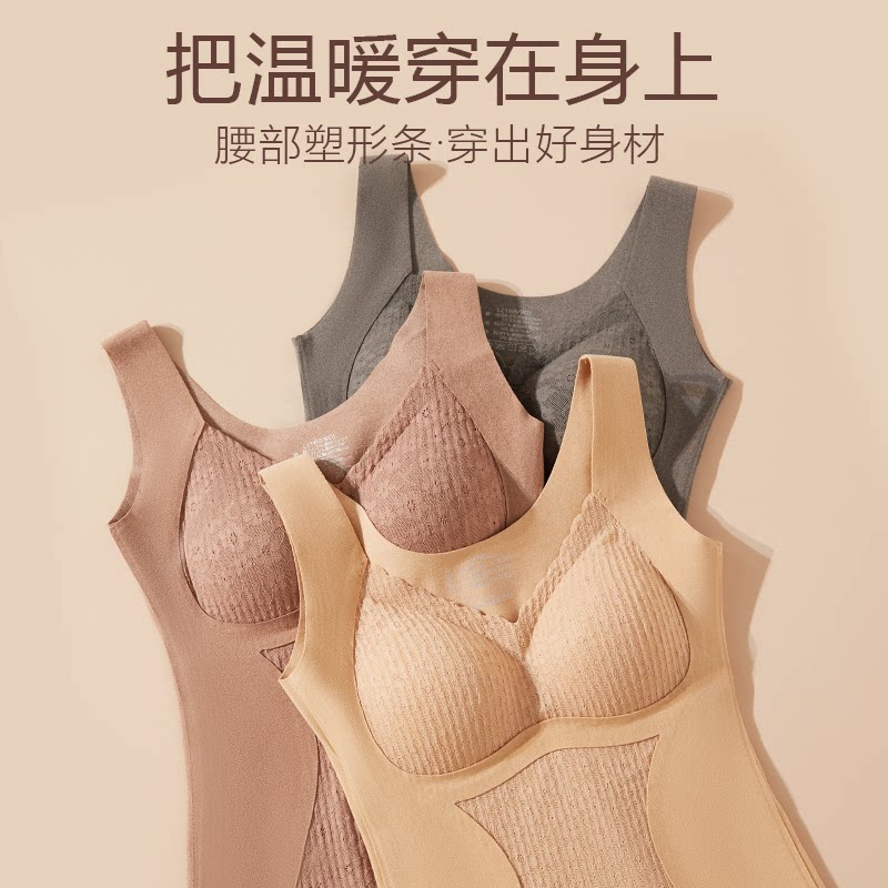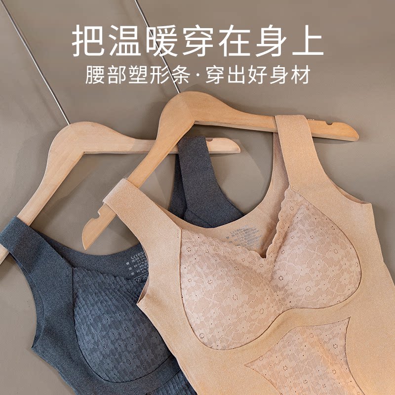 淘宝贝希优选店,加绒保暖女士背心内衣双面德绒无痕免穿文胸收腹打底秋冬款kx6886