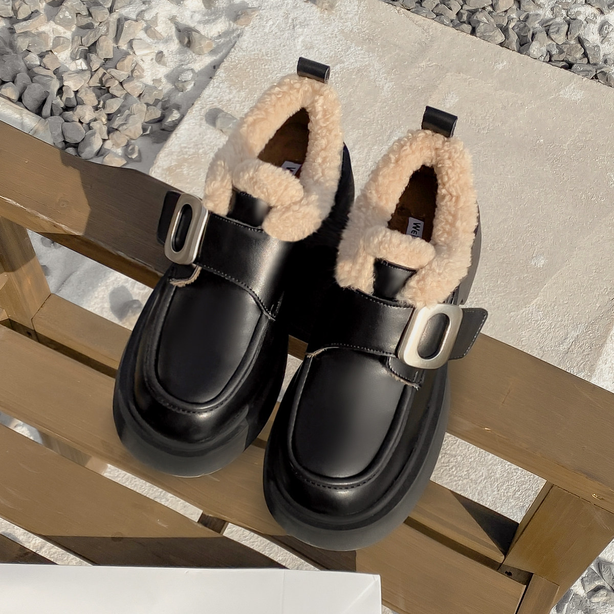 淘宝米菲女鞋,加绒小皮鞋单鞋厚底乐福鞋