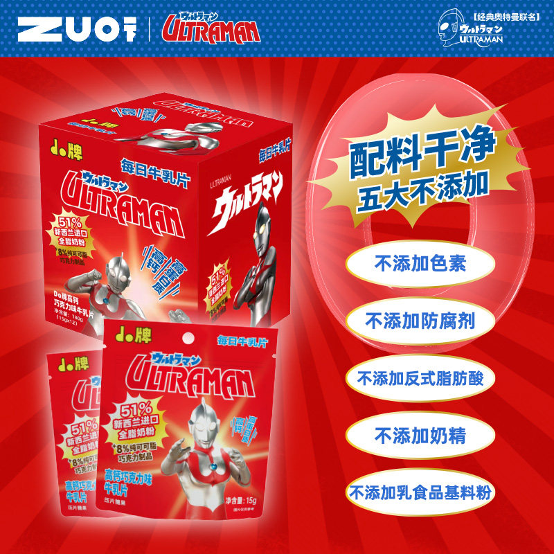 ZUO一下do牌奥特曼巧克力牛乳片即食糖果国产零食15g*12袋(盒装)