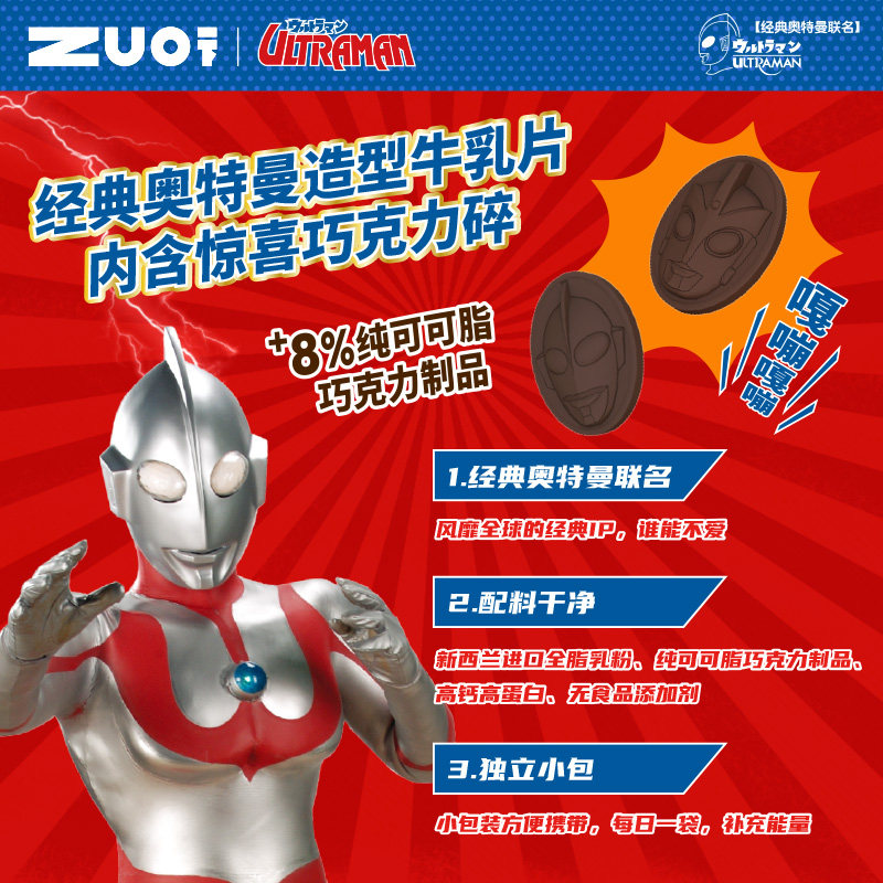 ZUO一下do牌奥特曼巧克力牛乳片即食糖…