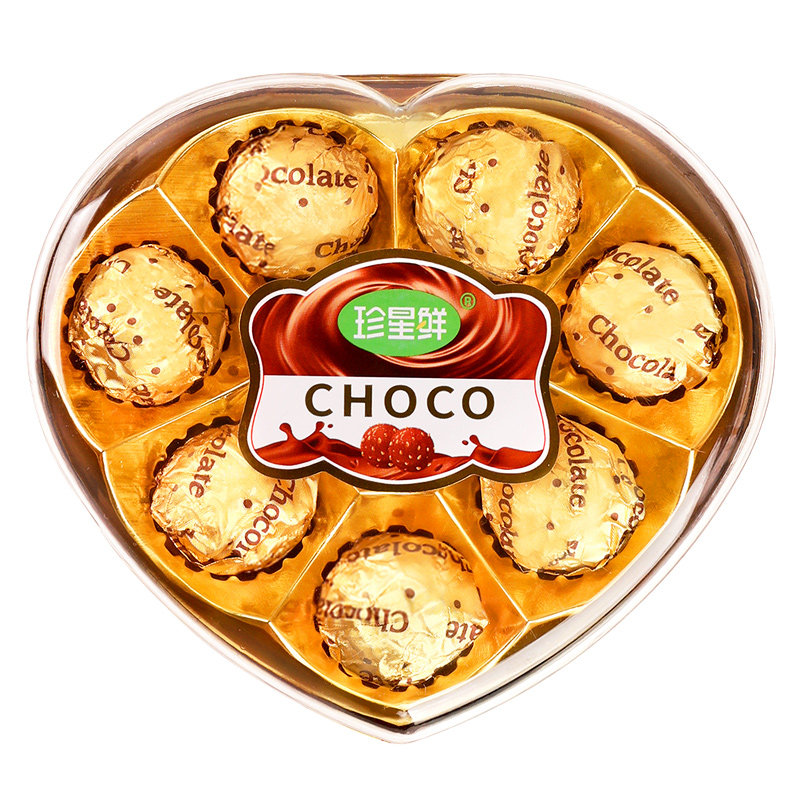珍星鲜夹心巧克力心形礼盒装8粒 送女友威化喜糖零食糕点点心100g
