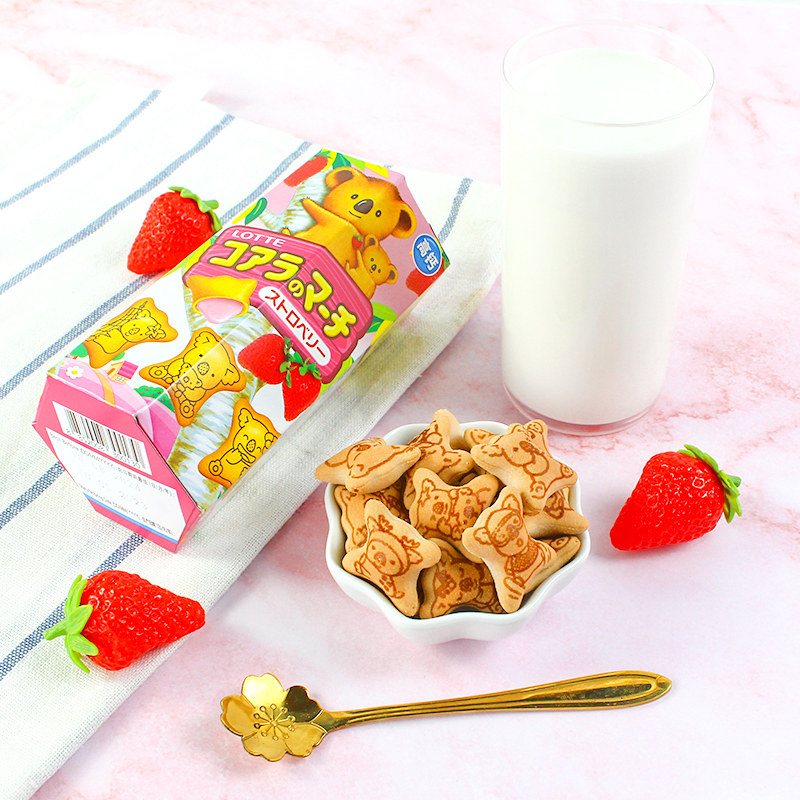 原装进口Lotte/乐天小熊饼干草莓巧克力夹心注心饼干儿童休闲零食