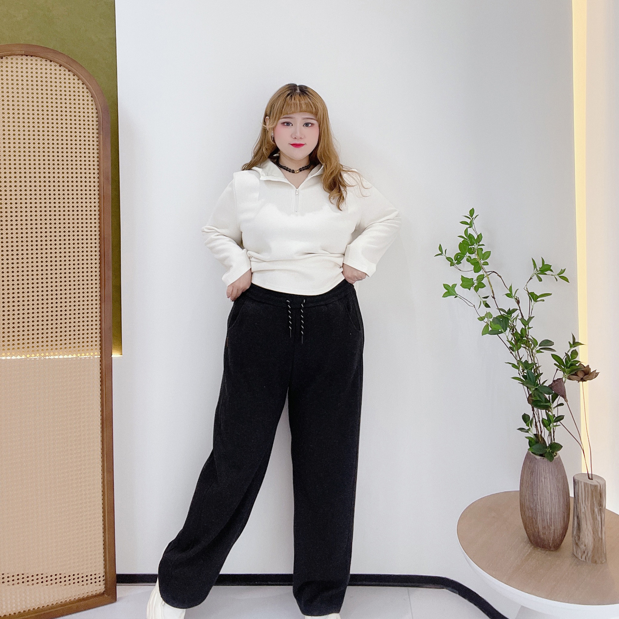 2024秋冬新款胖莹莹大码女装时尚宽松显瘦弯刀裤抽绳高腰休闲裤