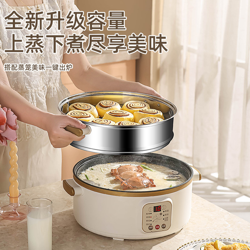 电锅蒸煮炖一体锅不锈钢电蒸笼小型电蒸锅多功能家用三层预约定时