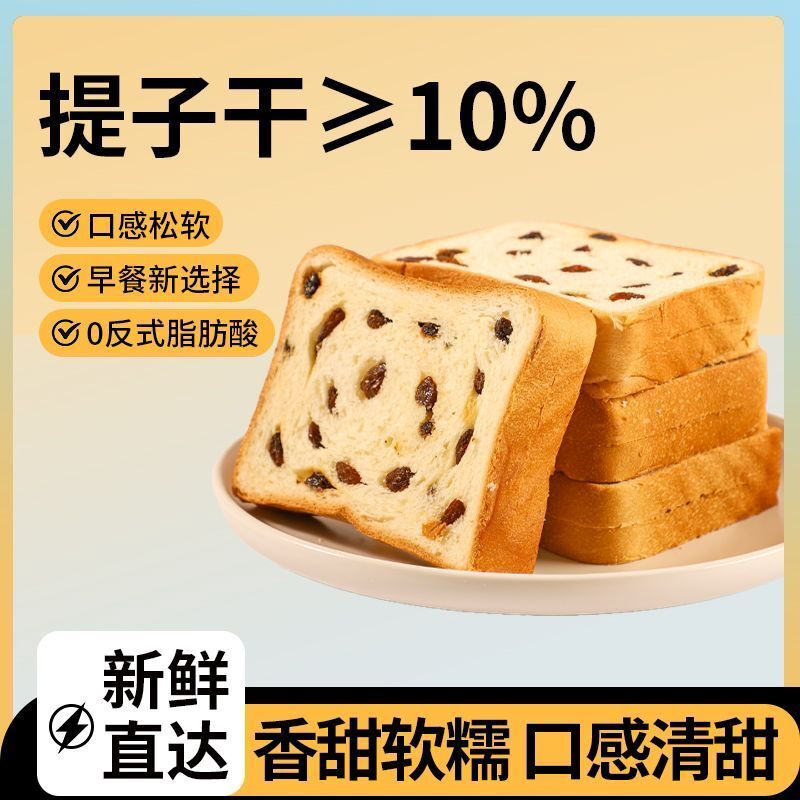 天猫脆量食品旗舰店,葡萄干提子吐司面包吐司奶香切片营养早餐健康面包代餐零食整箱