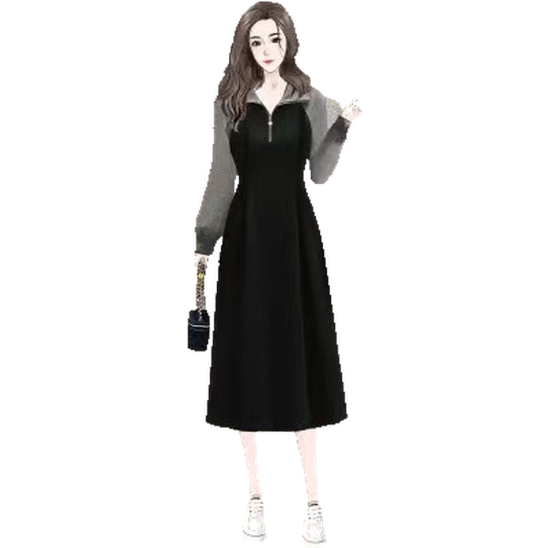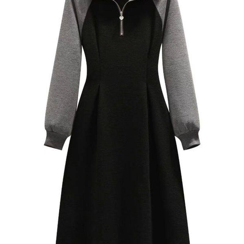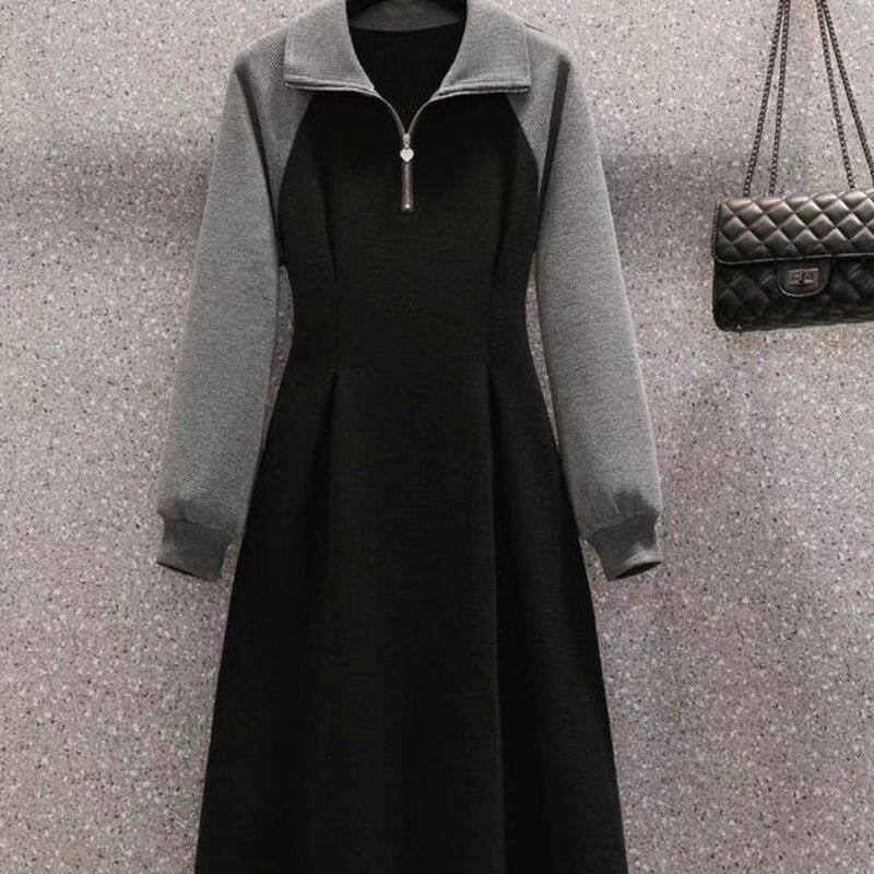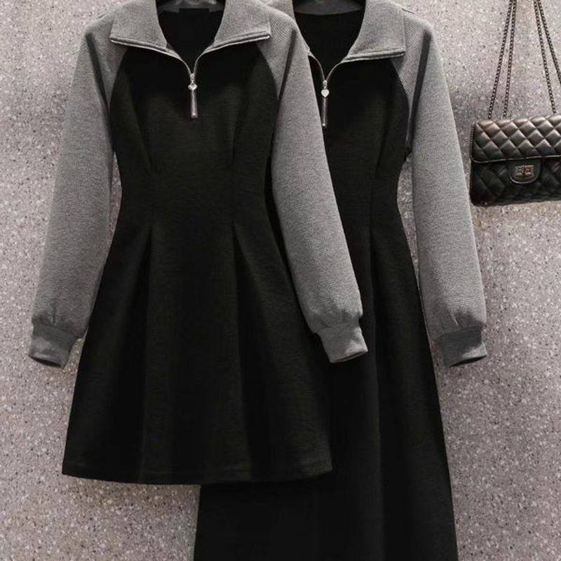 连衣裙秋冬年新款妹妹p大码女装小众长短款拼色设计感领胖2024olo