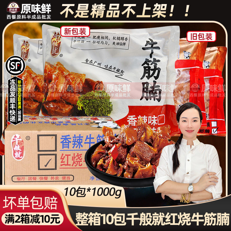 整箱千般就红烧牛筋腩熟牛腩冷冻商用即食牛杂牛腩粉商用1kg*10