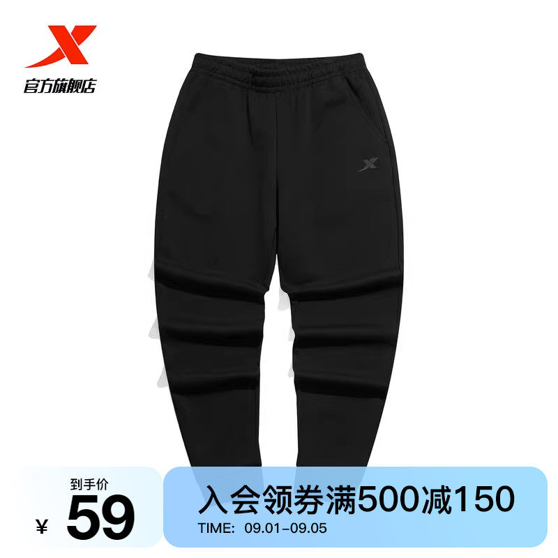 天猫特步官方旗舰店,特步冬季新款logo基础款健身运动裤,66%棉34%聚酯纤维;常规版型