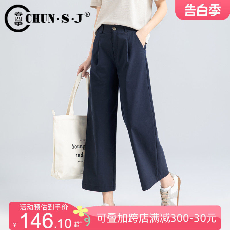 天猫春四季旗舰店,春四季九分天丝棉混纺休闲阔腿裤