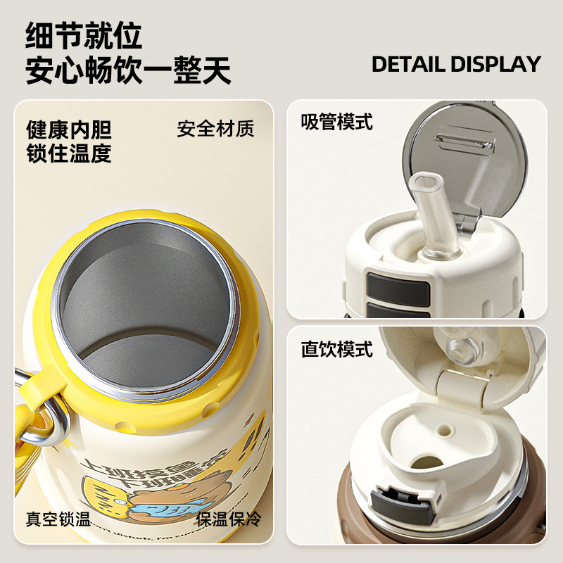 奇古堂儿童保温杯男孩上学专用水壶2024新款小学生宝宝吸管水杯子
