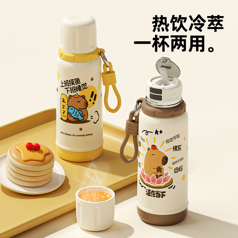 天猫雅非奇旗舰店,一盖三饮保温杯女2025新款卡皮巴拉杯子儿童吸管水杯学生上学专用,潮流精品,品质保证