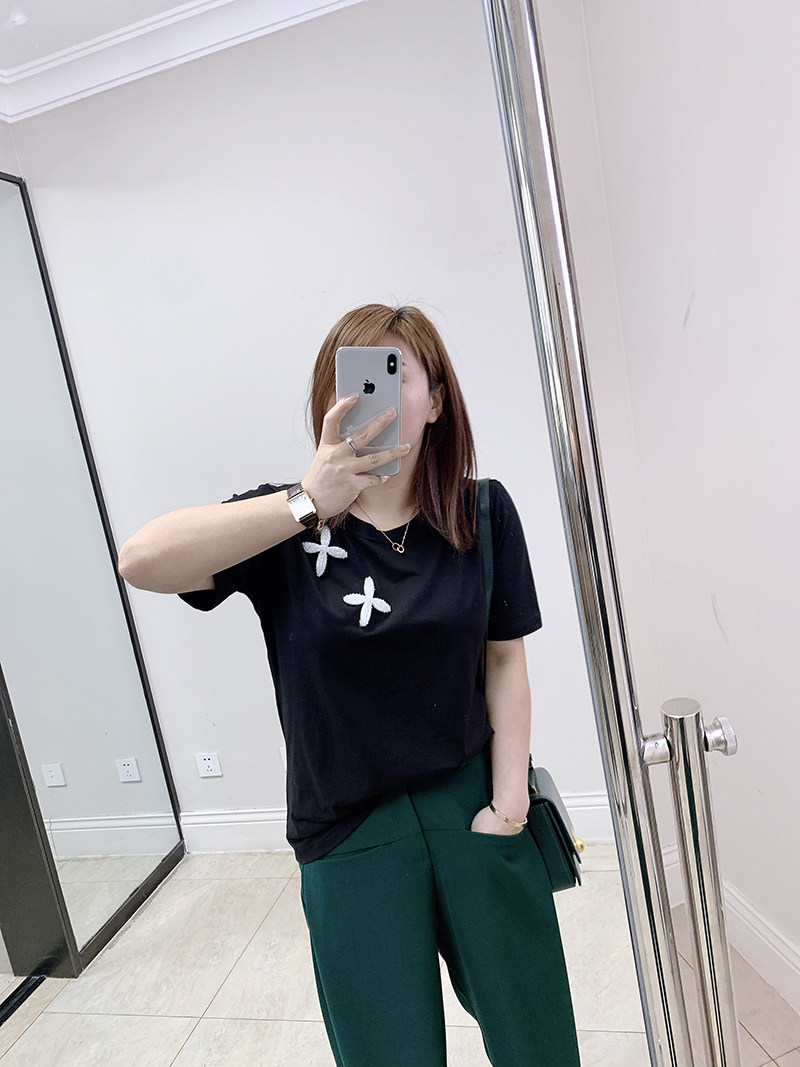 淘宝小7自制大码女装,大码重工十字宽松串珠短袖上衣