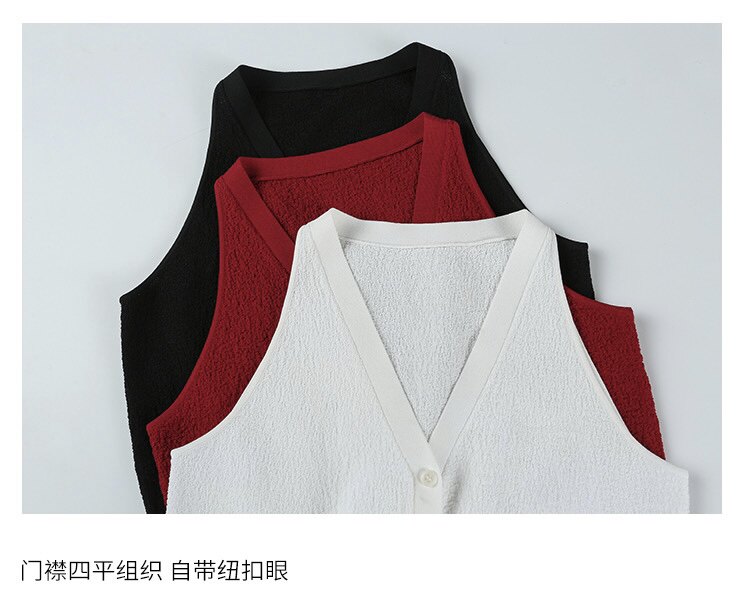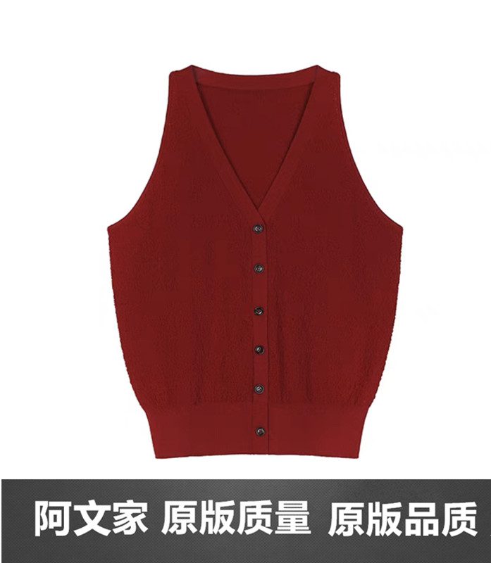 阿文家 港风马甲 复古V领红色吊带削肩背心女收腰凉感针织短上衣