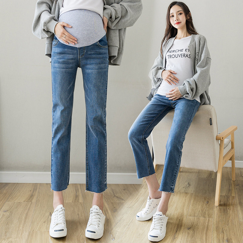 秋季孕妇裤子150cm矮小个子外穿时尚牛仔裤九分直筒打底八分裤装