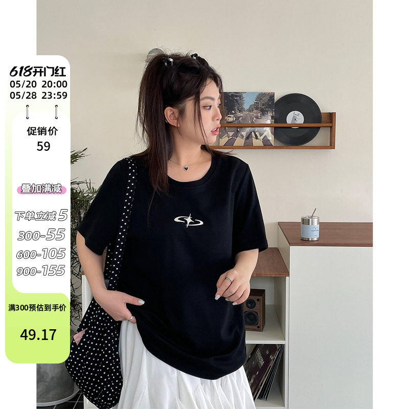 夏季大码女装2024新款美式正肩女短袖t恤200斤胖mm遮肚藏肉上衣潮