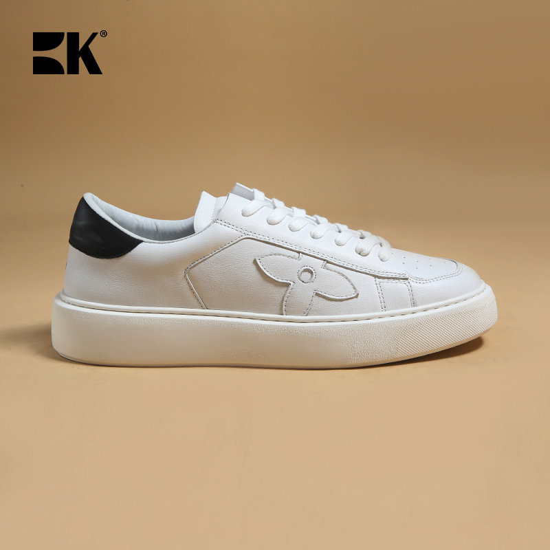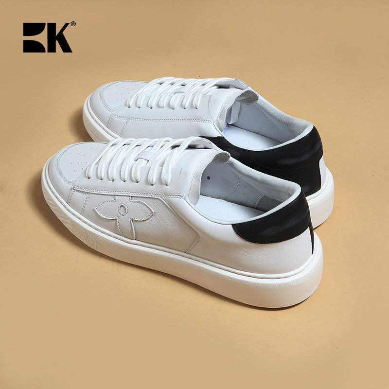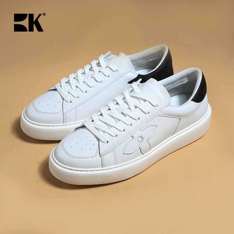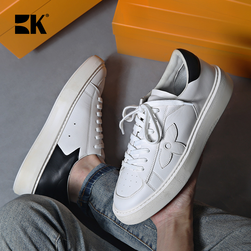 BK伯帝酷奇2024男鞋春季真皮小白鞋男士休闲鞋透气做旧小脏鞋增高