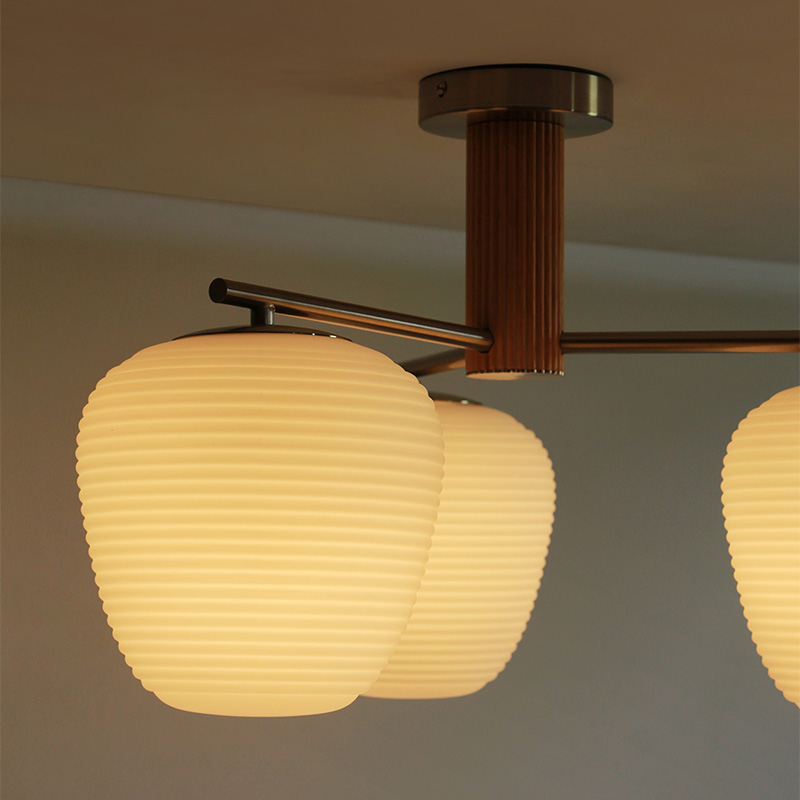 三头硕果卧室北欧玻璃原木风吸顶灯