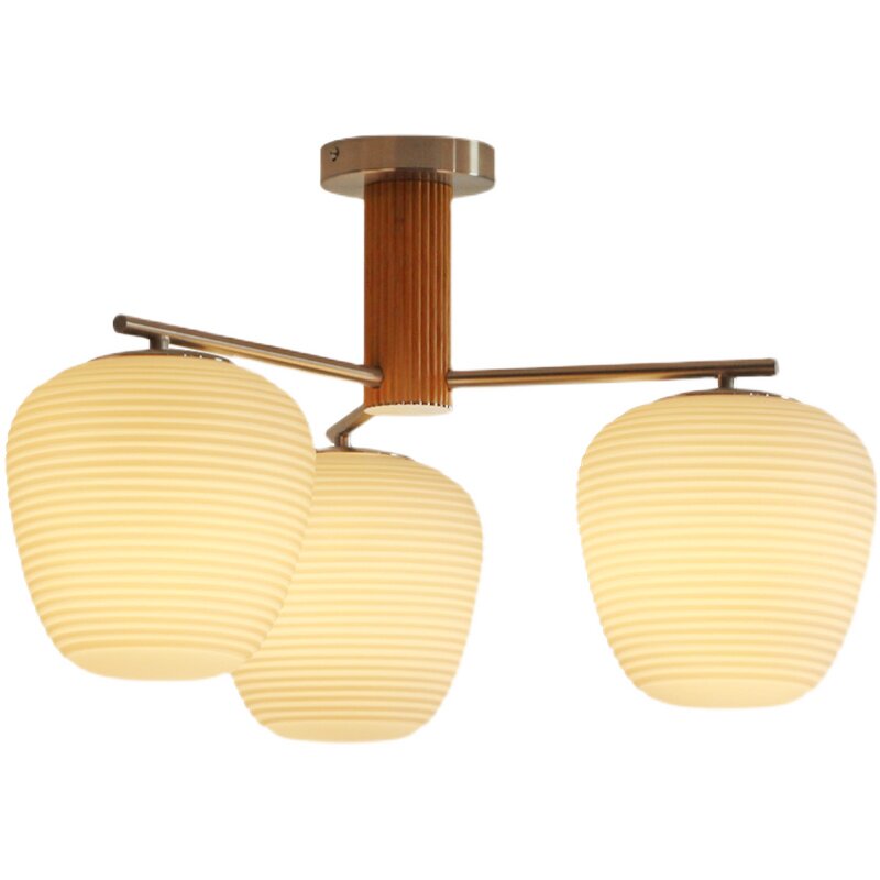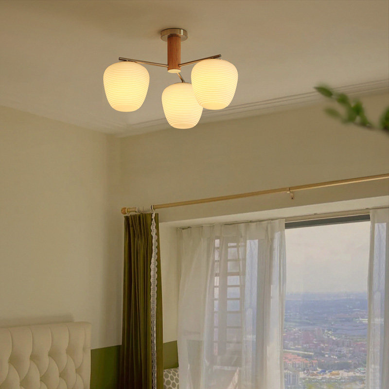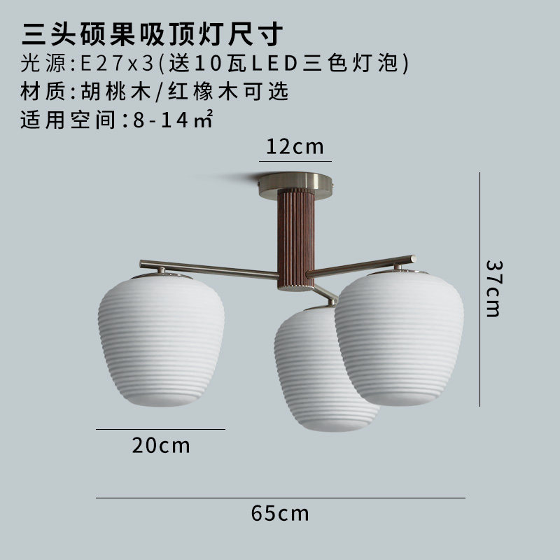 三头硕果吸顶灯卧室北欧中古吊灯简约奶白玻璃原木风餐厅灯具小众