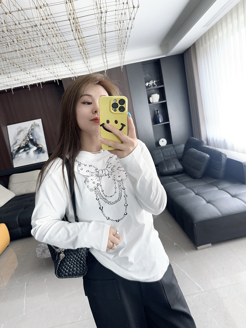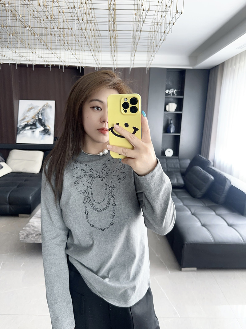 蝴蝶结链条 大码女装胖mm2024年早秋秋冬装新款T恤打底衫显瘦清冷