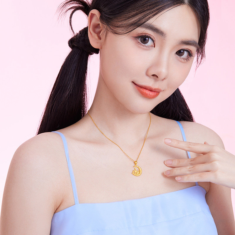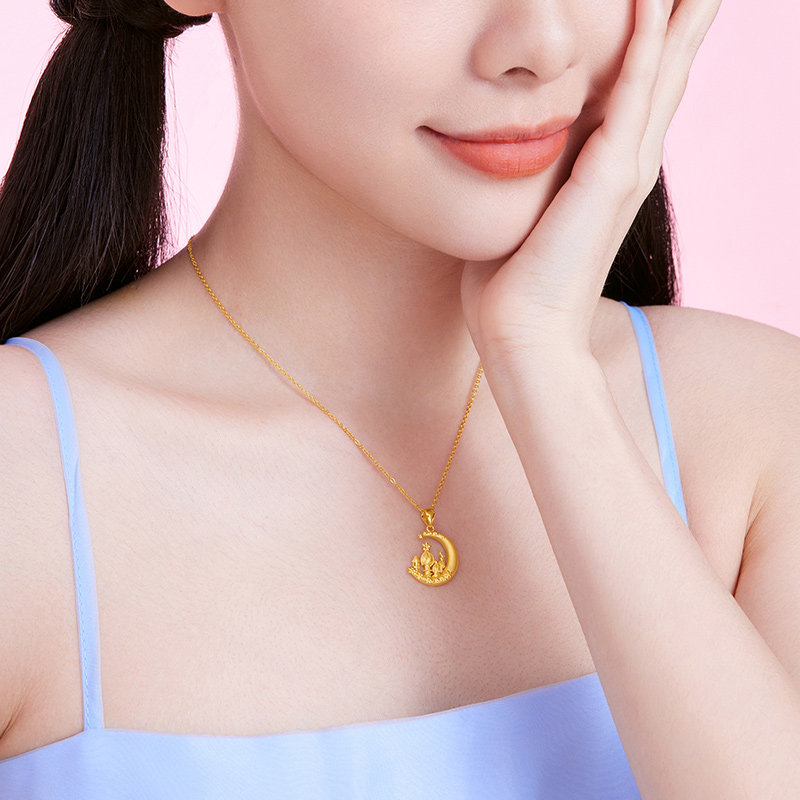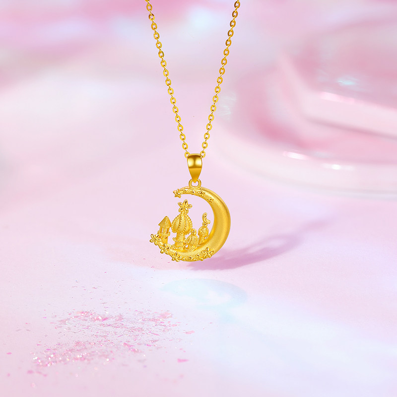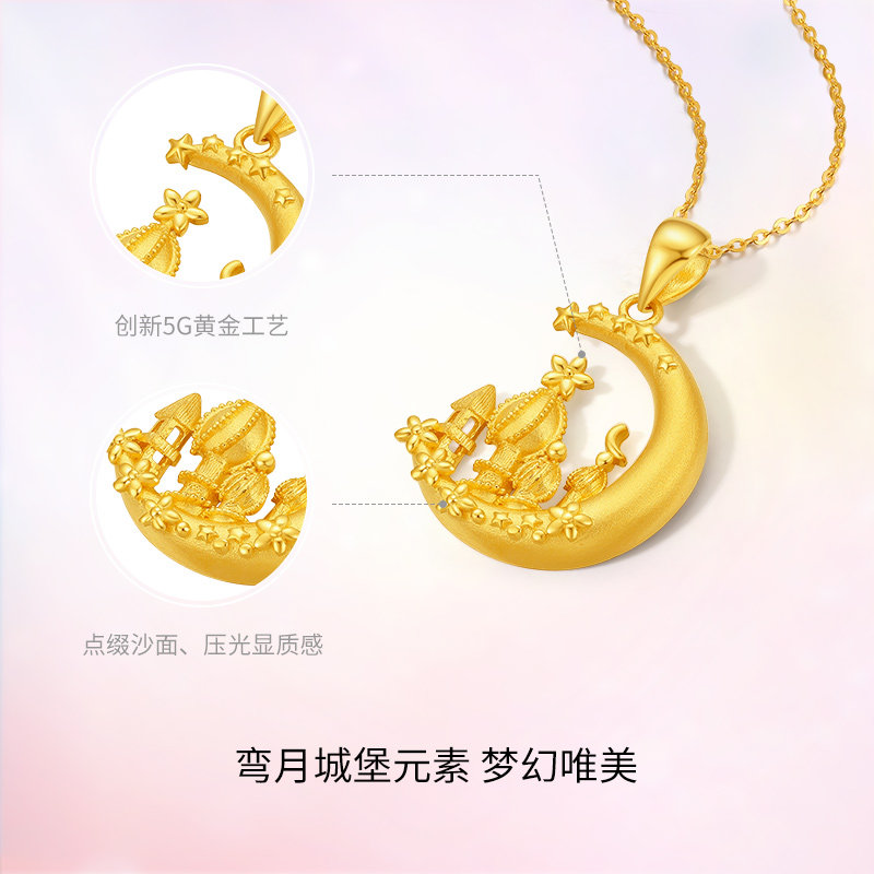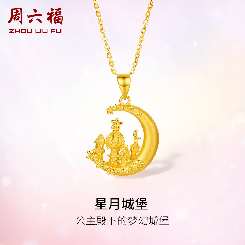 周六福5G黄金星月城堡吊坠女足金计价送女友送闺蜜节日礼物纪念
