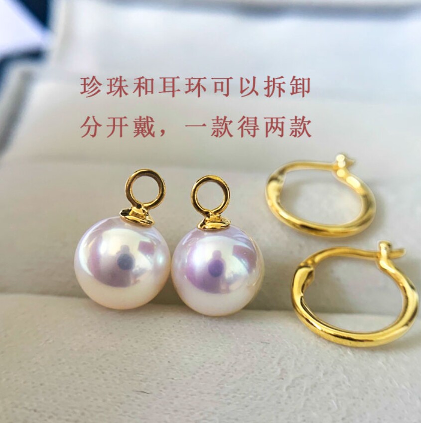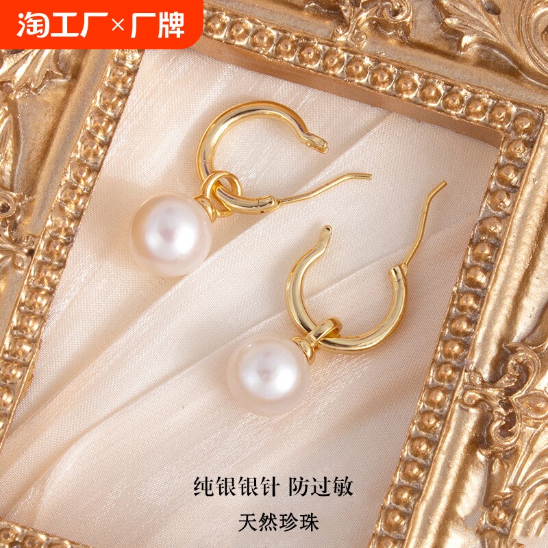 天猫淘工厂美妆直营,诸暨原材料淡水珍珠正圆耳环S925银耳扣简约女耳圈一款两戴可拆卸,潮流精品,品质保证