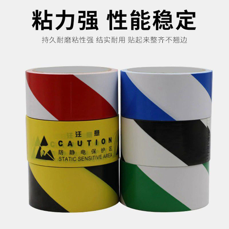 PVC警示胶带黄黑地板反胶带斑马线地面划线标识彩色区域定位划线