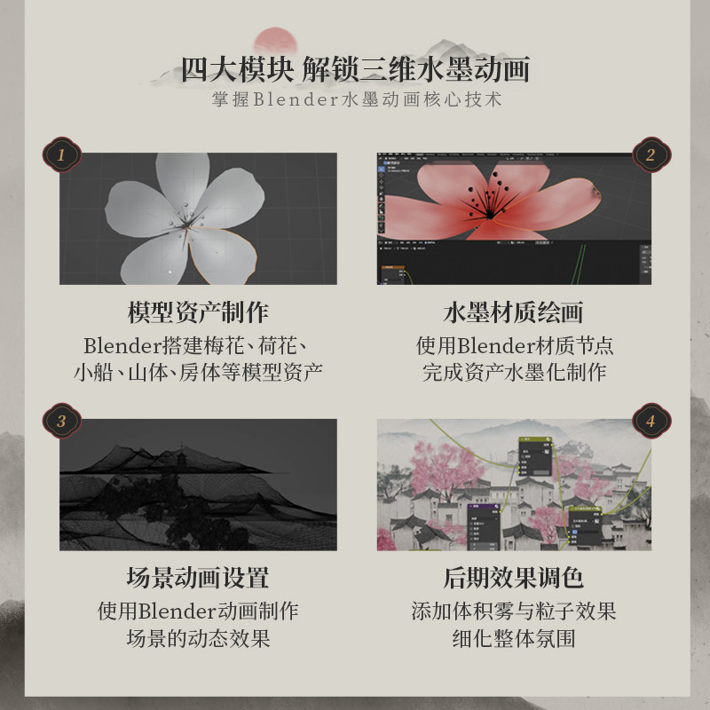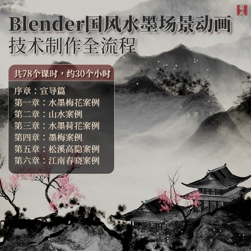翼狐Blender3.4教程水墨画场景国风多案例建模动画渲染视频课程