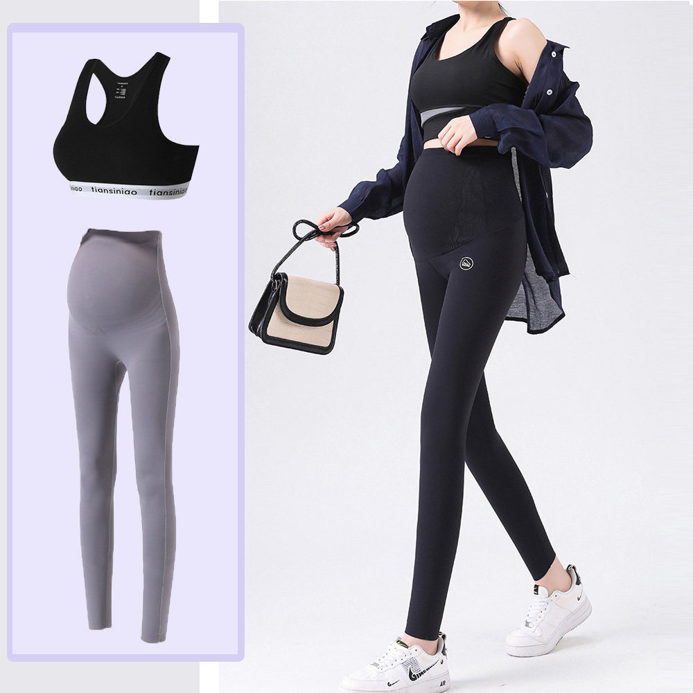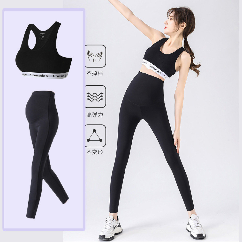 2023春夏新款孕妇瑜伽裤健身裤套装鲨鱼皮芭比裤运动服上衣文胸女