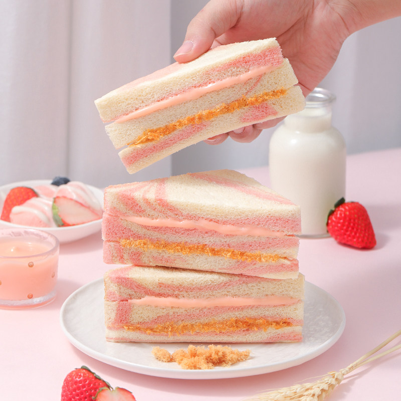 草莓冰淇淋味三明治夹心软面包代餐学生早餐…