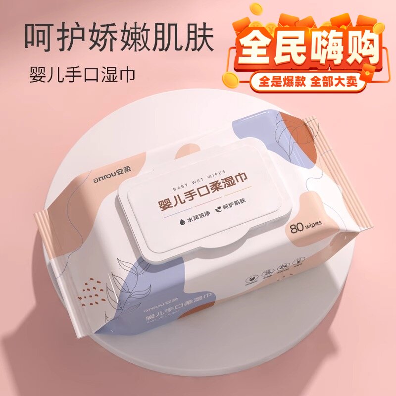 安柔婴儿湿巾大张绵柔婴幼儿生手口屁专用宝宝儿童湿纸巾大包特价