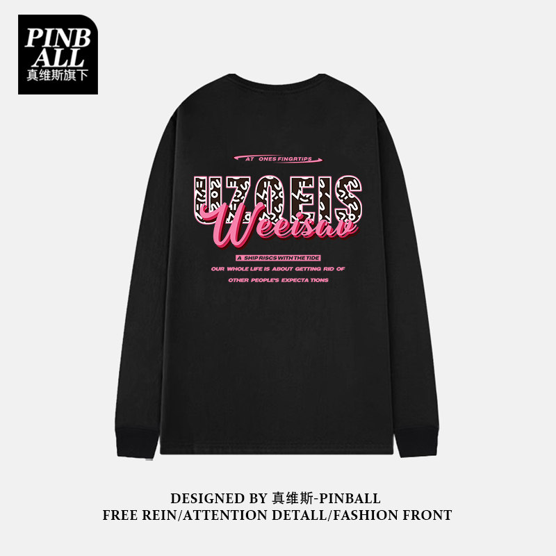 天猫PINBALL旗舰店,秋季新款纯棉男装嘻哈长袖t恤潮,纯棉t恤秋季嘻哈港风炸街潮流长袖上衣男装
