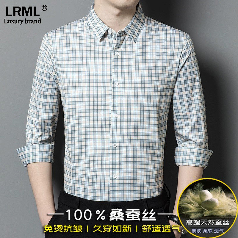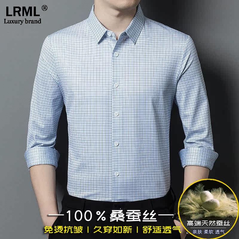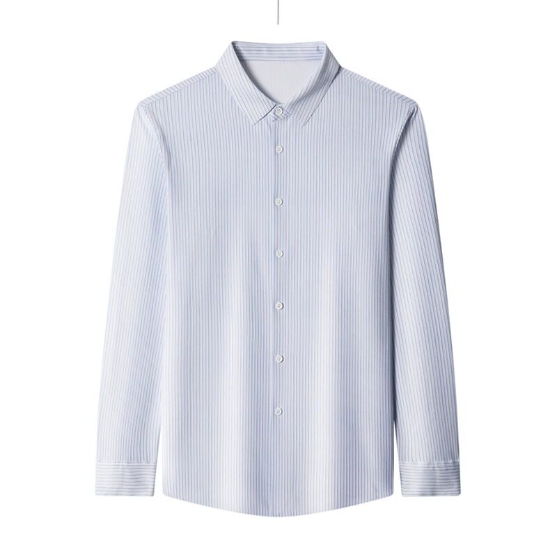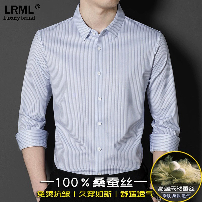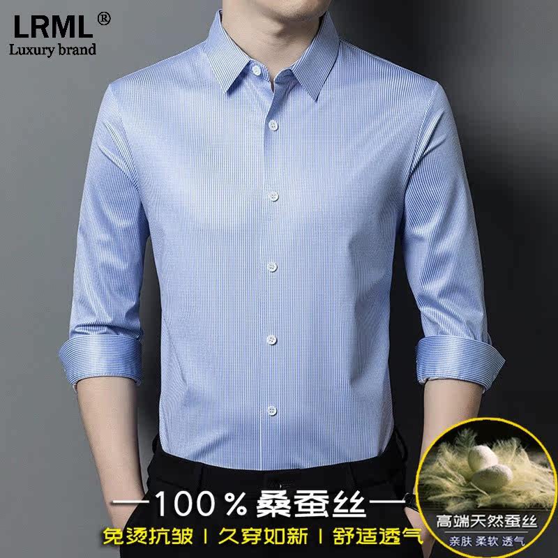 鄂尔多斯市春秋季桑蚕丝长袖衬衫男中年商务高端免烫真丝条纹衬衣