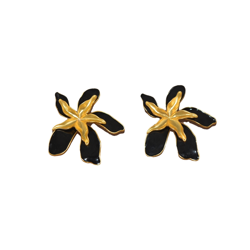 金属复古黑色女大花朵耳钉耳饰