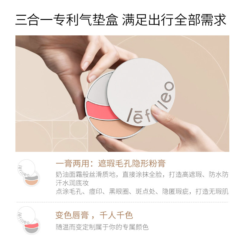 天猫lefilleo海外旗舰店,丽菲欧水光气垫遮瑕唇膏三合一,美白、紧致、抗皱、防晒多功效型气垫