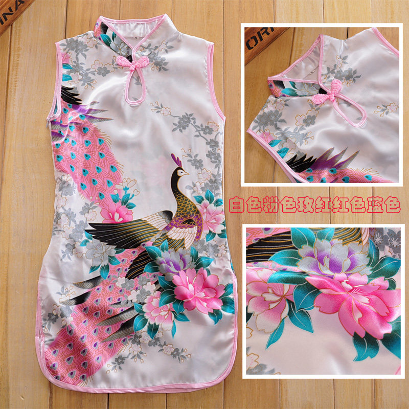 2019新款唐装女儿童夏季旗袍裙公主裙连衣裙六一表演服装孔雀旗袍