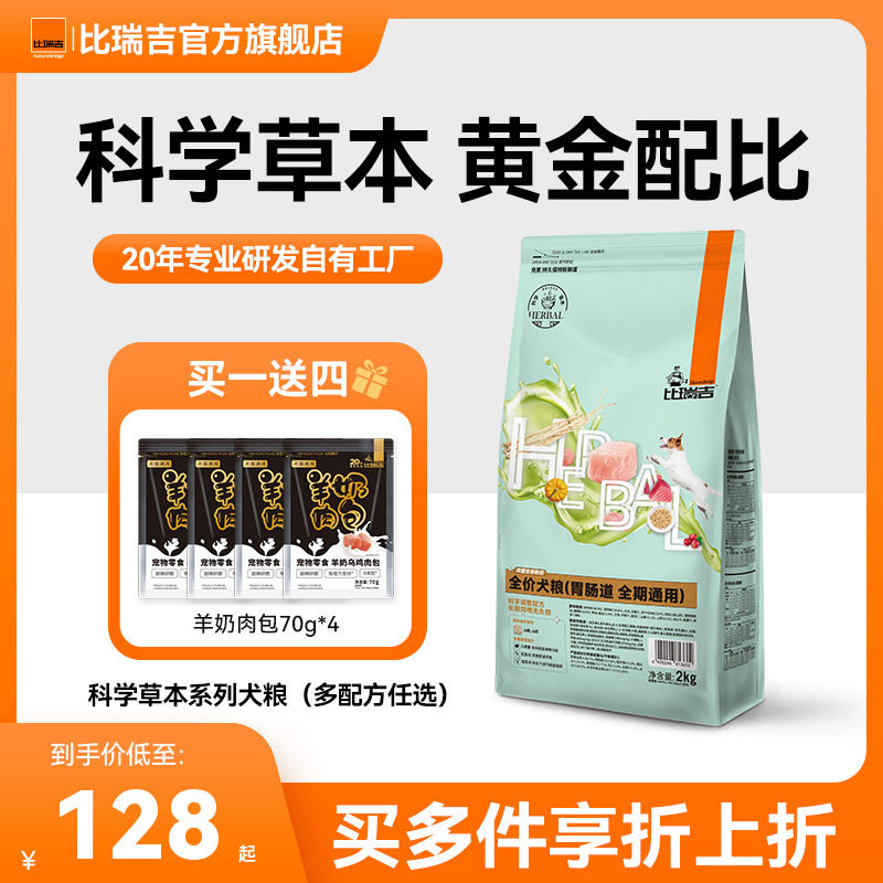 天猫比瑞吉旗舰店,比瑞吉草本狗粮犬粮2kg,新品升级科学喂养配方 菌群平衡 助消化