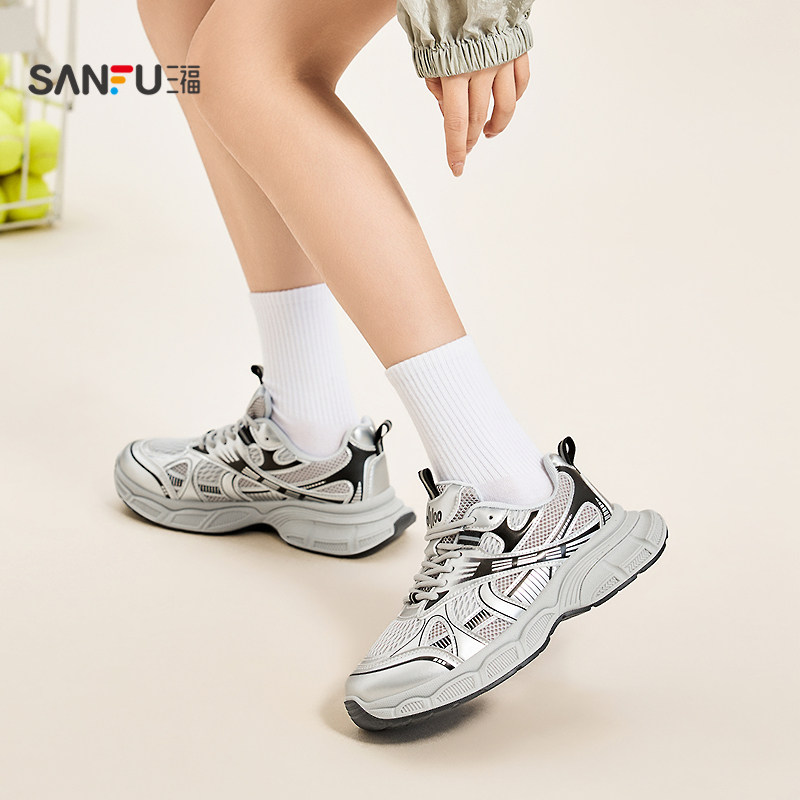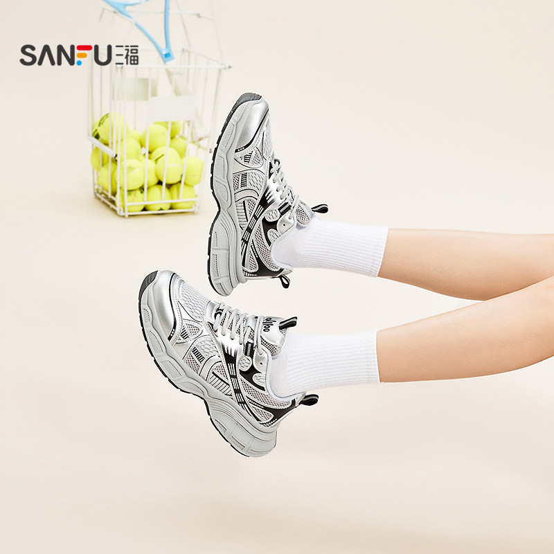 天猫三福服饰官方旗舰店,三福运动鞋女秋季校园休闲拼接透气老爹鞋圆头系带女鞋844699