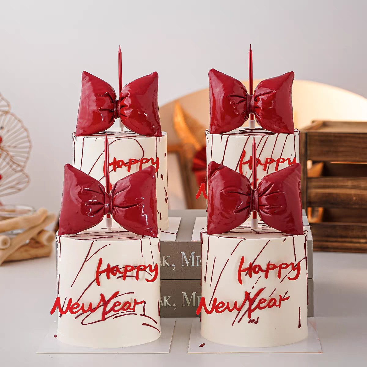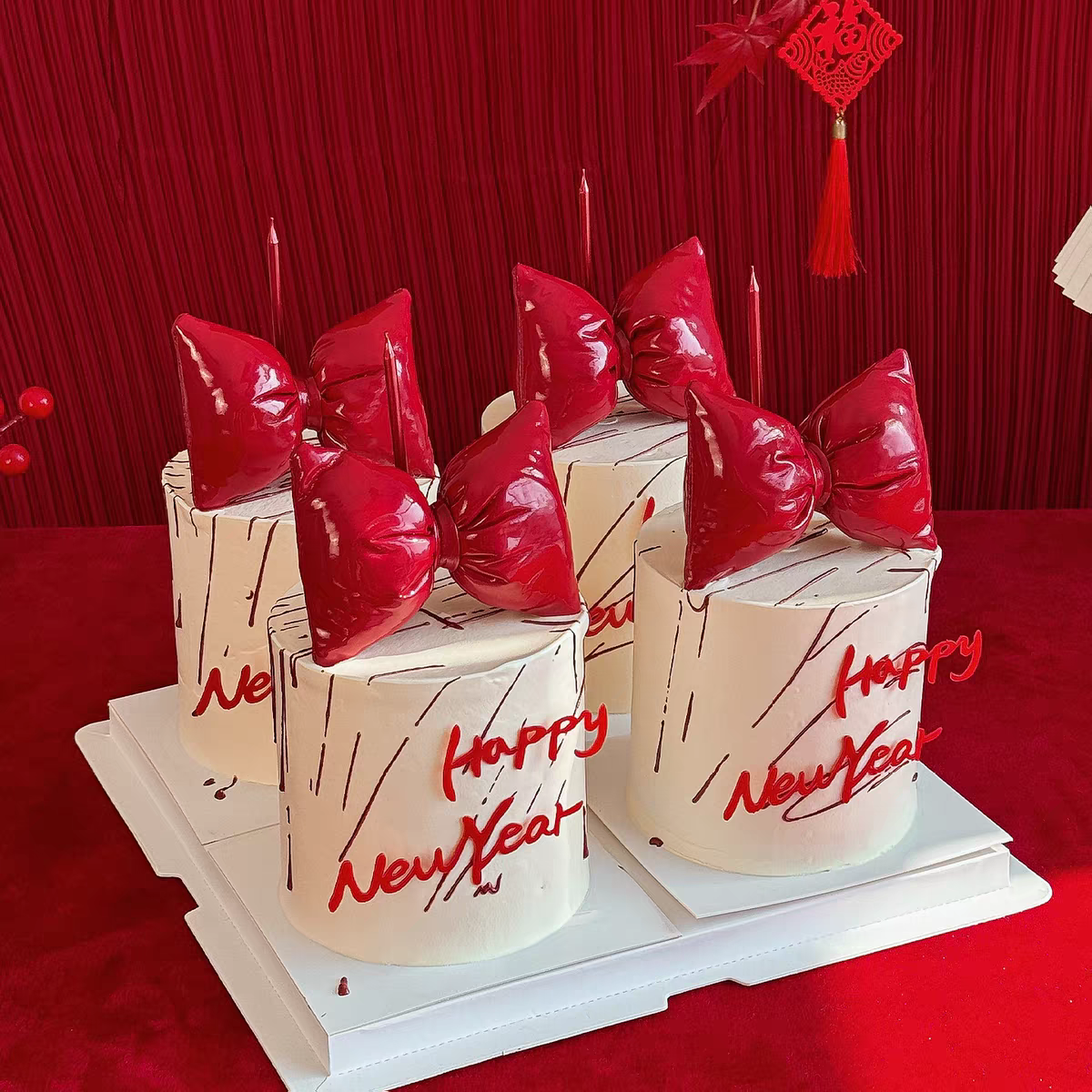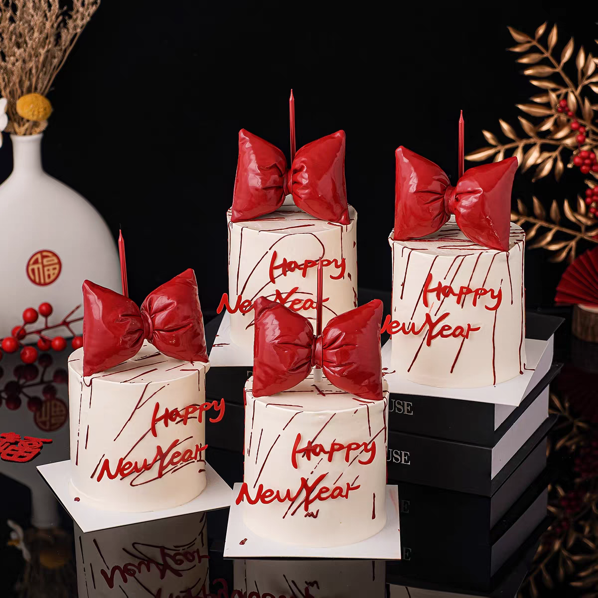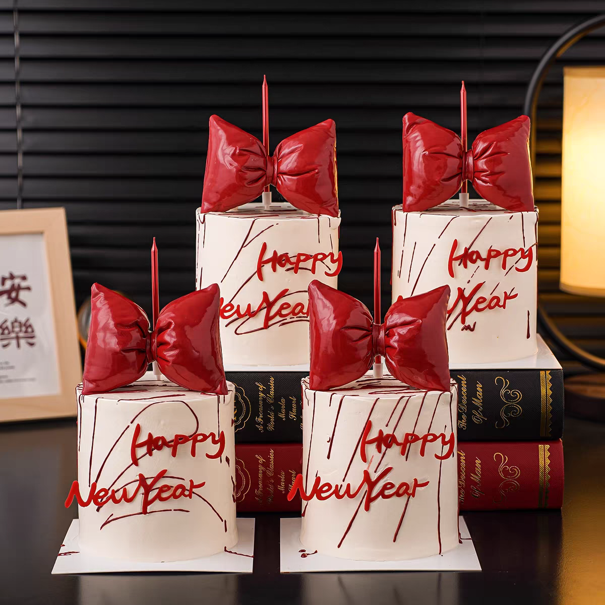淘宝果果酱烘焙坊,2026新年跨年马年皮质立体蝴蝶结丝带装扮插件蛋糕装饰亚克力摆件