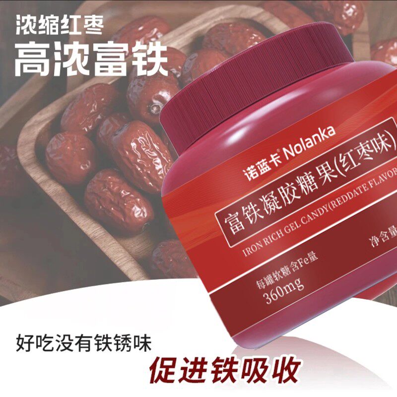 天猫轻山悦色旗舰店,富铁软糖红枣味瓶装大桶270克/罐Fe高含量360mg即食正品成人