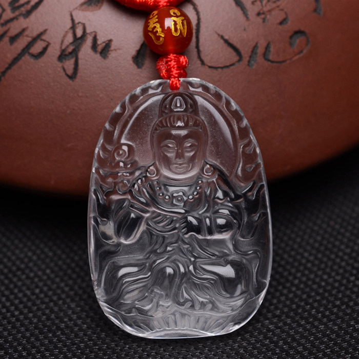 淘宝质量保真 支持鉴定,天然白水晶大势至菩萨吊坠本命佛