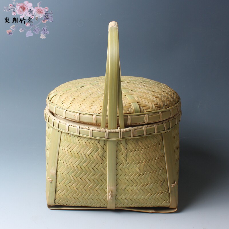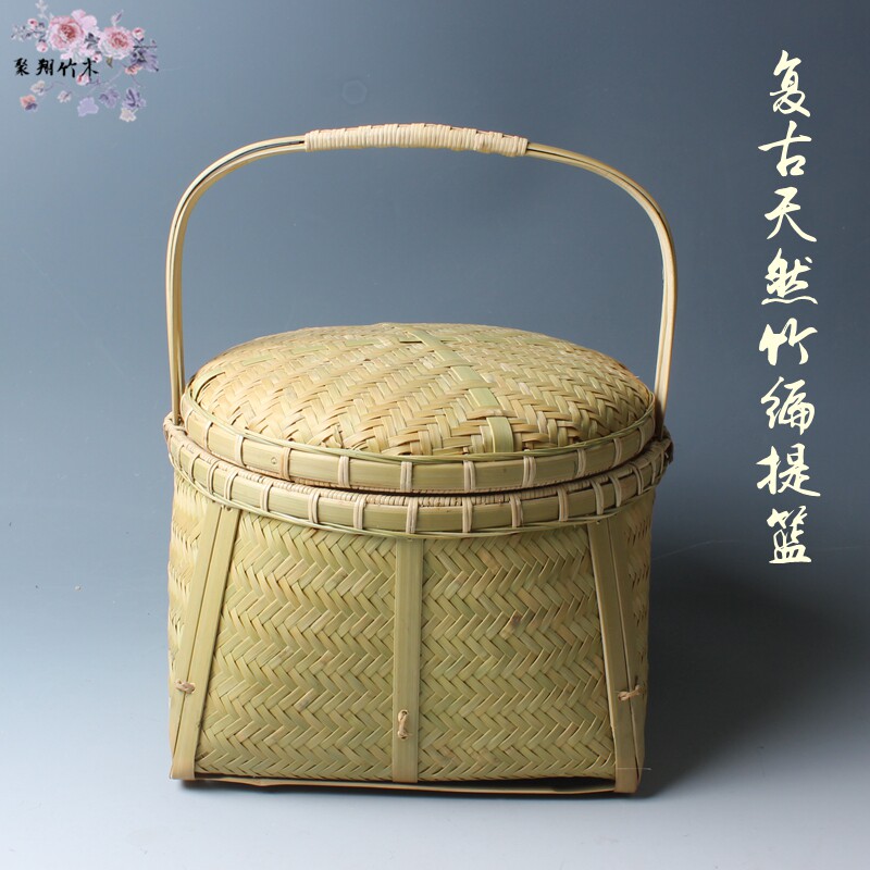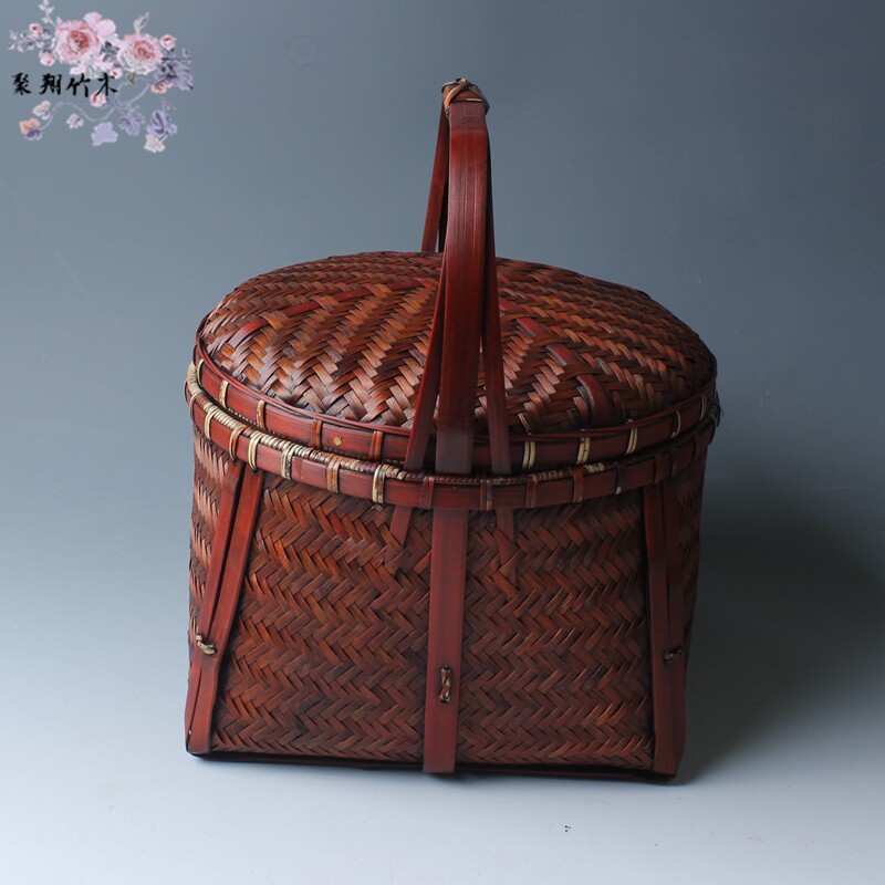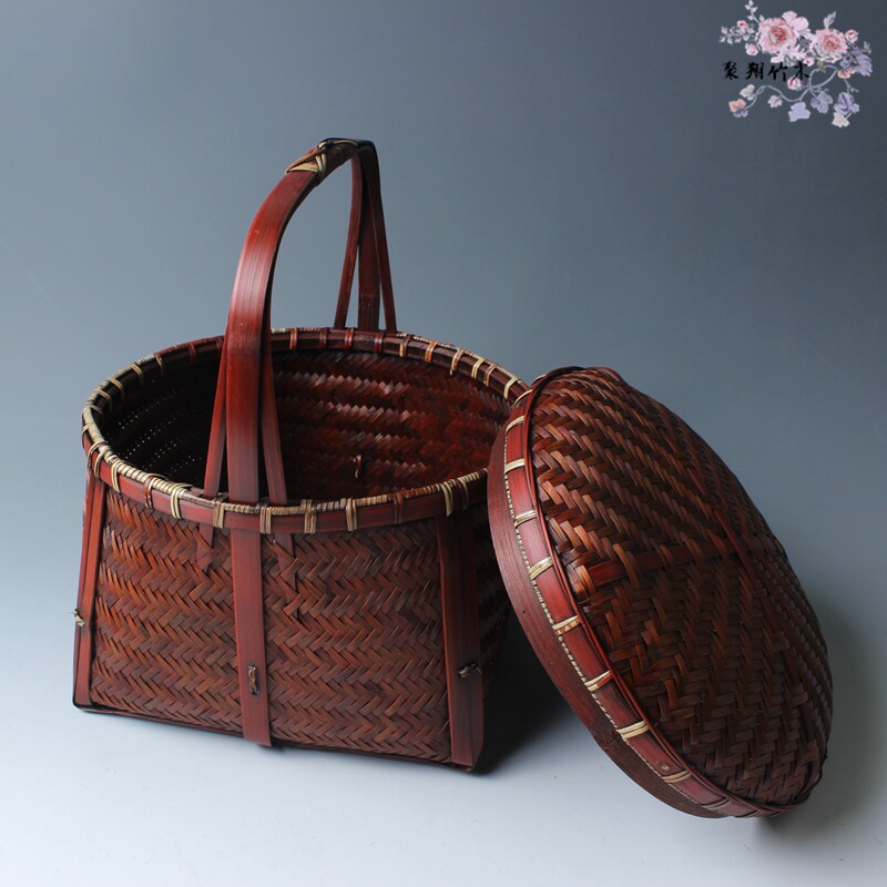 淘宝聚翔竹木,复古精编竹篮带盖子食盒普洱茶饼盒