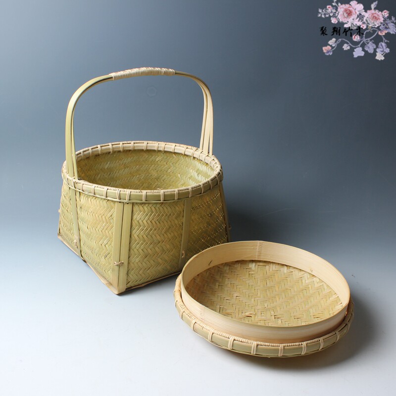 复古精编竹篮带盖子食盒普洱茶饼盒