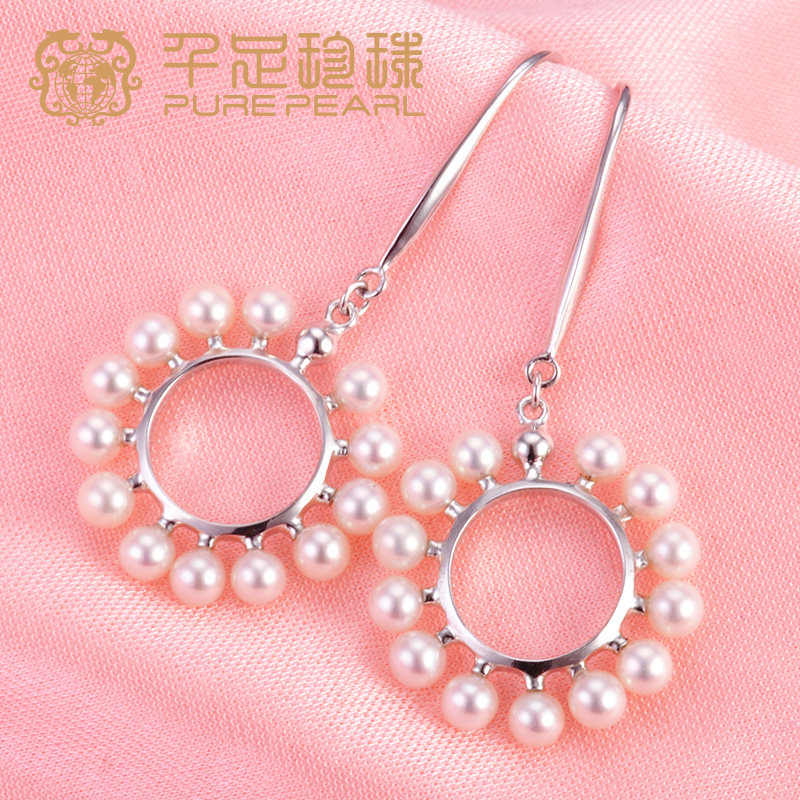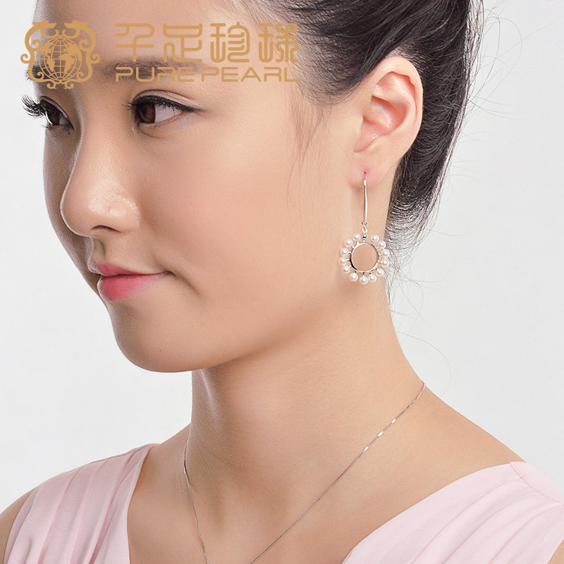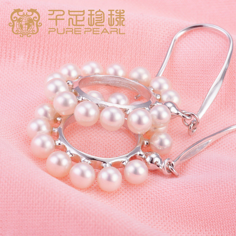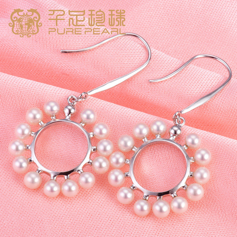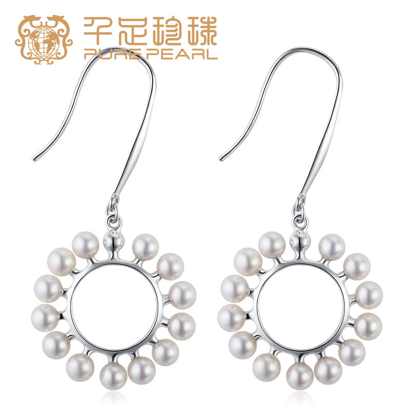 千足珠宝太阳花3.5-4mm近圆强光天然淡水珍珠耳饰新品