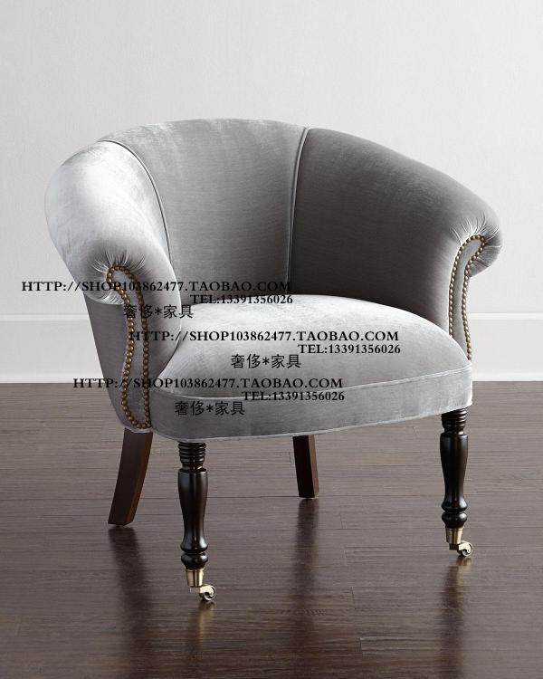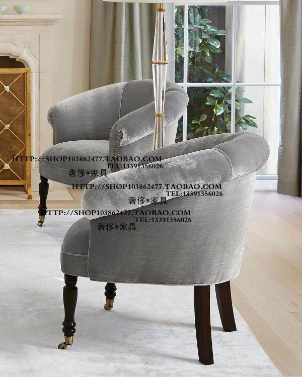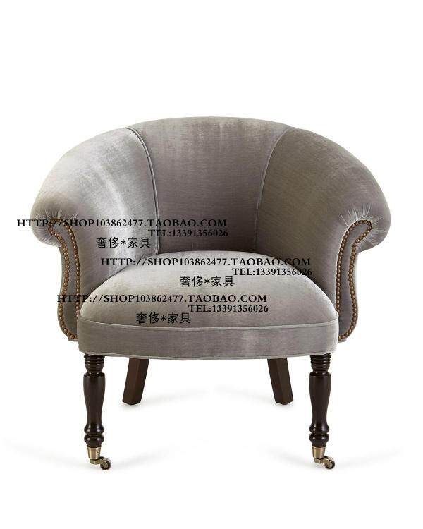 出口比利时法式乡村风格实木滑轮铆钉布艺单人位沙发椅洽谈椅圈椅